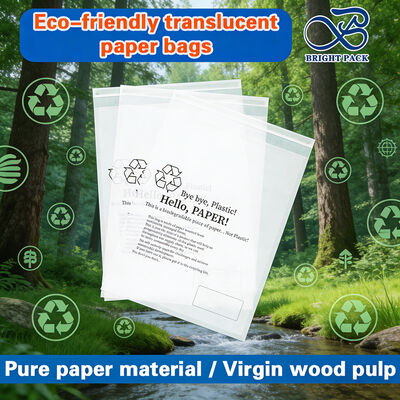 کیسه های کاغذی شیشه ای سفید پایدار که به طور خاص برای بسته بندی لباس ها، کت ها، لباس زیر و وسایل مختلف پوشاک طراحی شده اند.این راه حل های بسته بندی زیست تجزیه پذیر جایگزین سازگار با محیط زیست برای کیسه های پلاستیکی سنتی را ارائه می دهند.
